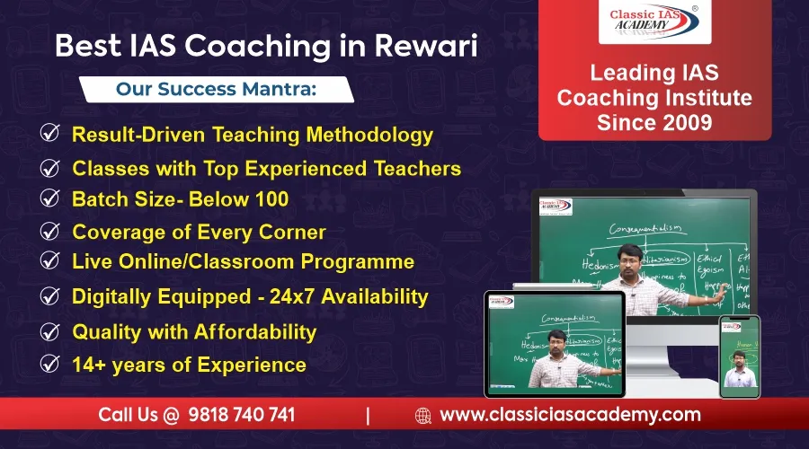 Classic IAS Academy is the No.1 choice for IAS coaching in Rewari. Here are some reasons to choose our UPSC coaching instiute in Rewari-