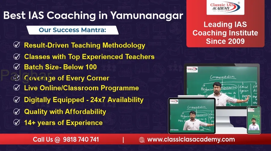 Classic IAS Academy is the No.1 choice for IAS coaching in Yamunanagar. Here are some reasons to choose our UPSC coaching instiute in Yamunanagar-