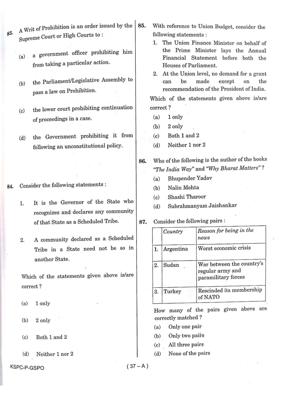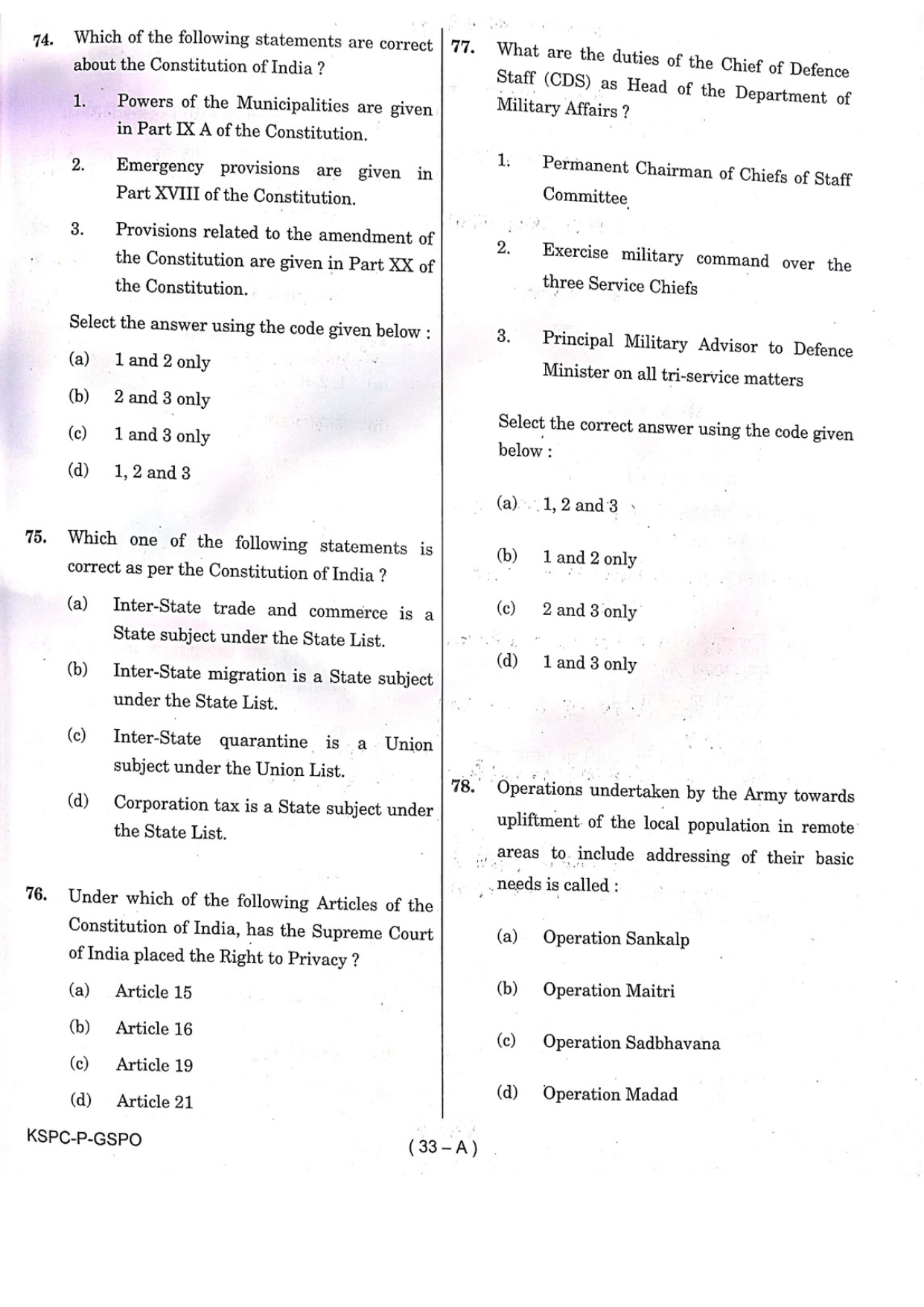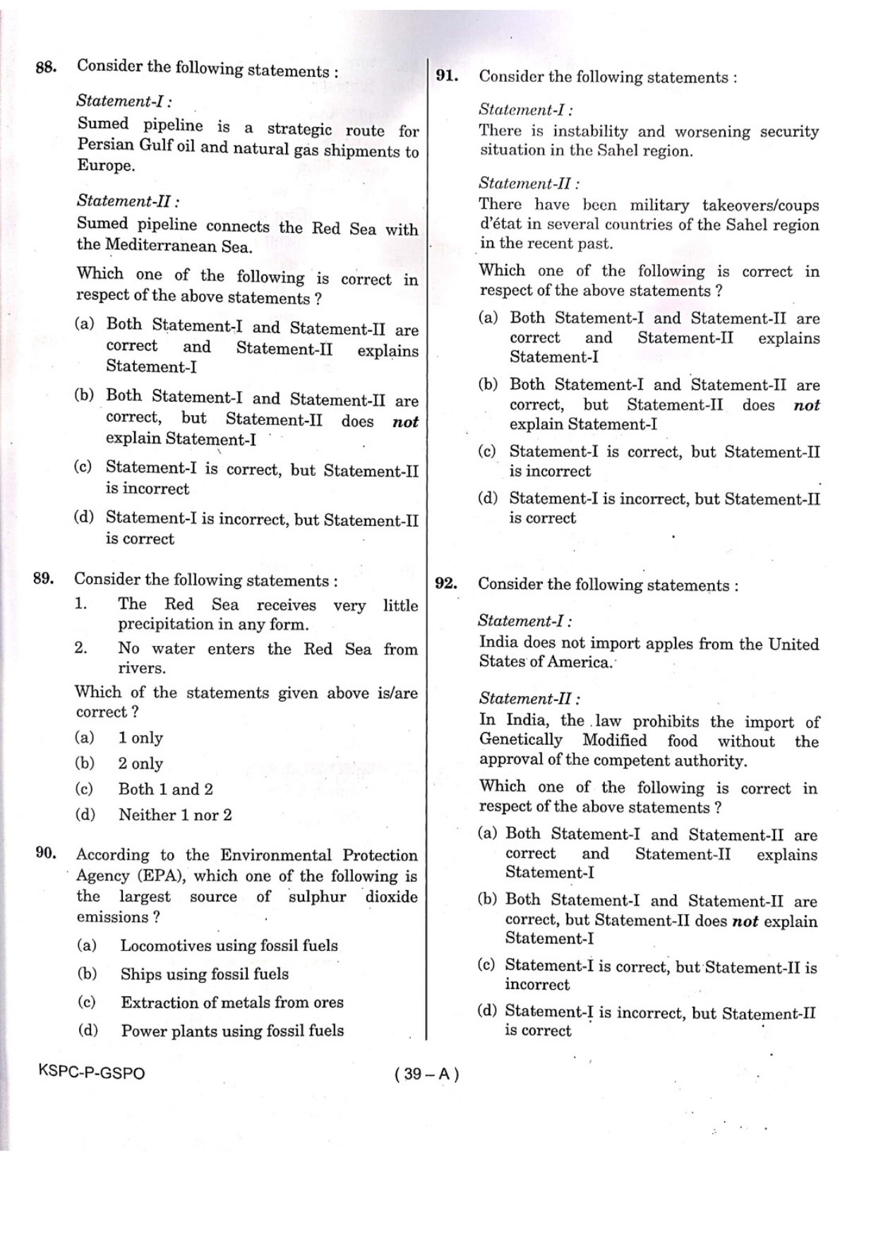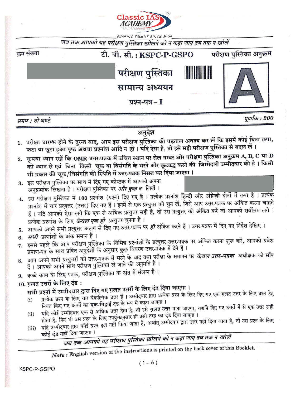 General Studies Question Paper- Prelims 2024
